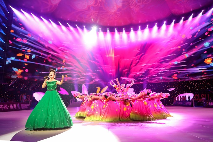 開(kāi)幕式文藝表演部分的開(kāi)場(chǎng)舞《青春綻放》,以極具年輕氣息和熱情動(dòng)感的音樂(lè)開(kāi)場(chǎng),營(yíng)造出活力四射和宏大氣勢(shì);隨后,來(lái)自中國(guó)雜技團(tuán)的《空竹》表演,也讓觀眾深深感受到中國(guó)雜技的無(wú)窮魅力;歌舞《百花齊放》、《我心永恒》、《waka waka?來(lái)跳舞》等節(jié)目也贏得滿(mǎn)堂喝彩;《珠海我愛(ài)你》以本屆賽事國(guó)內(nèi)外青少年選手代表近60人的表演陣容,極富創(chuàng)意地將標(biāo)準(zhǔn)舞中的恰恰元素觸入其中,譜寫(xiě)了中拉友誼的華彩;而壓軸歌曲《共筑中國(guó)夢(mèng)》則是由著名歌唱家張妮演唱,形象而巧妙地展現(xiàn)中國(guó)夢(mèng)的精髓,以及標(biāo)準(zhǔn)舞和拉丁舞的文化沉淀與獨(dú)有韻味。