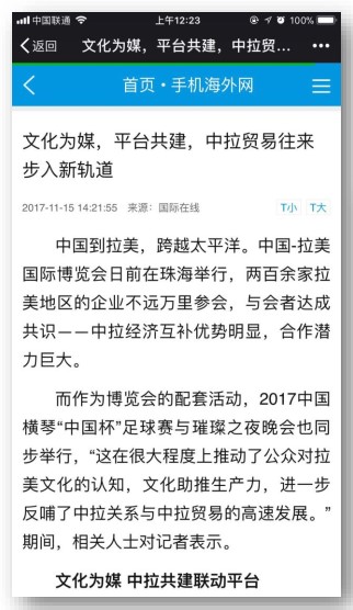 而作為博覽會的配套活動,2017中國橫琴“中國杯”足球賽與璀璨之夜晚會也同步舉行,“這在很大程度上推動了公眾對拉美文化的認(rèn)知,文化助推生產(chǎn)力,進(jìn)一步反哺了中拉關(guān)系與中拉貿(mào)易的高速發(fā)展?!?期間,相關(guān)人士對記者表示。