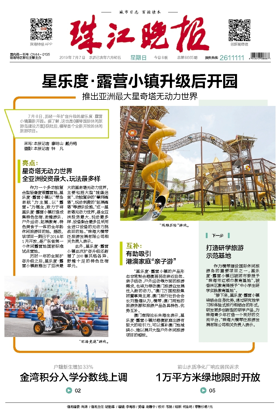 歷時一年的全面擴(kuò)容升級之后,星樂度·露營小鎮(zhèn)新推出了亞洲最大的星奇塔無動力世界,主要包括大型“城堡迷宮”、功能復(fù)雜的“攀爬高塔”,玩法刺激的“拓展高塔”等游樂設(shè)施?!斑@一星奇塔無動力世界,是全亞洲投資最大、玩法最多樣、設(shè)備聚合最多且采用全進(jìn)口設(shè)備的無動力挑戰(zhàn)目的地。”珠海大橫琴泛旅游發(fā)展有限公司相關(guān)負(fù)責(zé)人表示。