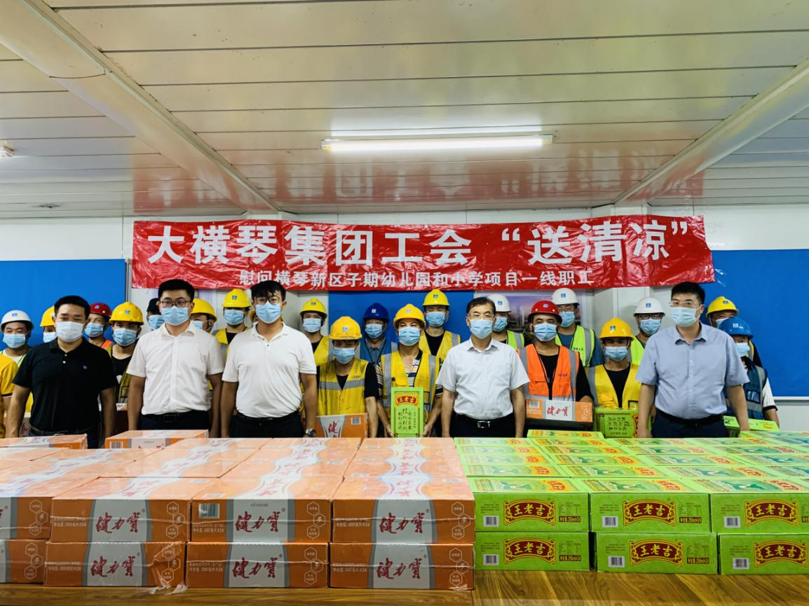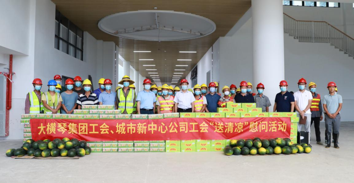 為進一步加強高溫作業(yè)職工勞動保護工作,關(guān)愛堅守在項目一線的建設(shè)者,2021年7月,大橫琴集團黨委書記、工會主席田偉帶隊分別赴科學城(二期)標段一、標段二項目、橫琴醫(yī)院項目、橫琴新區(qū)子期幼兒園和小學及保稅一小工程項目開展夏日送清涼慰問活動。