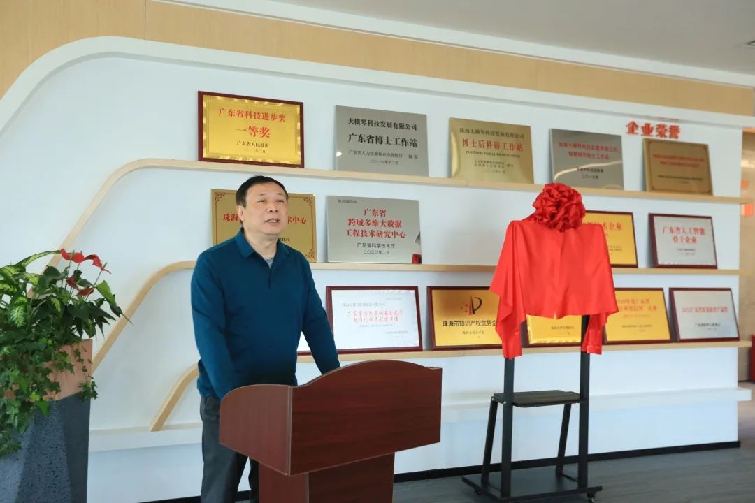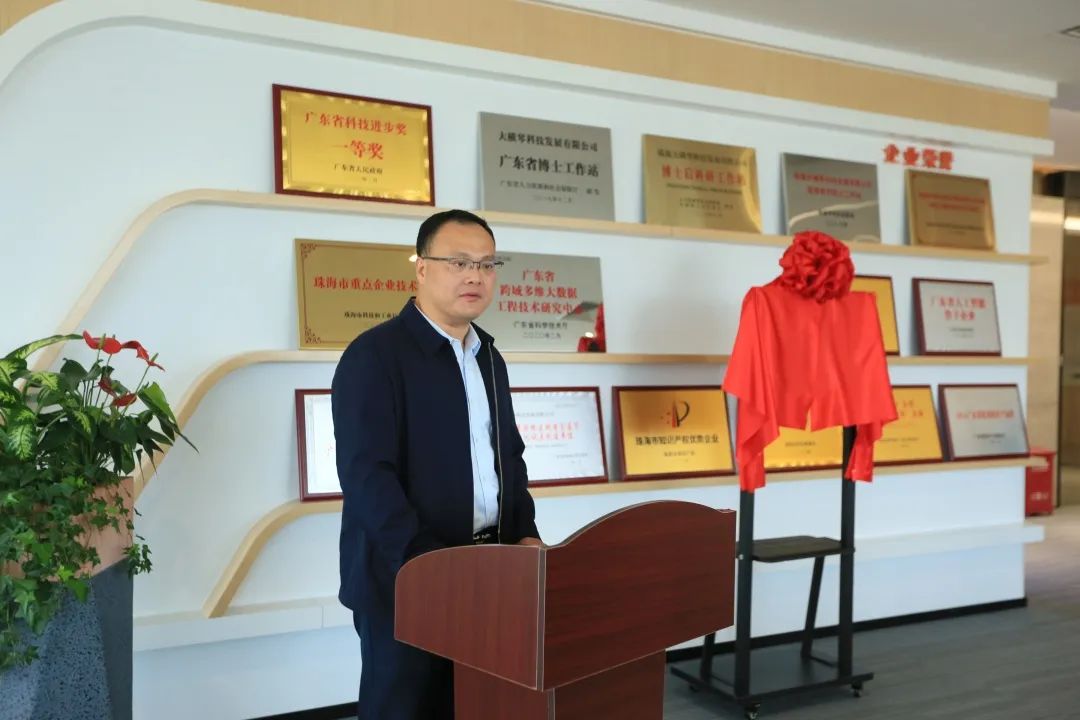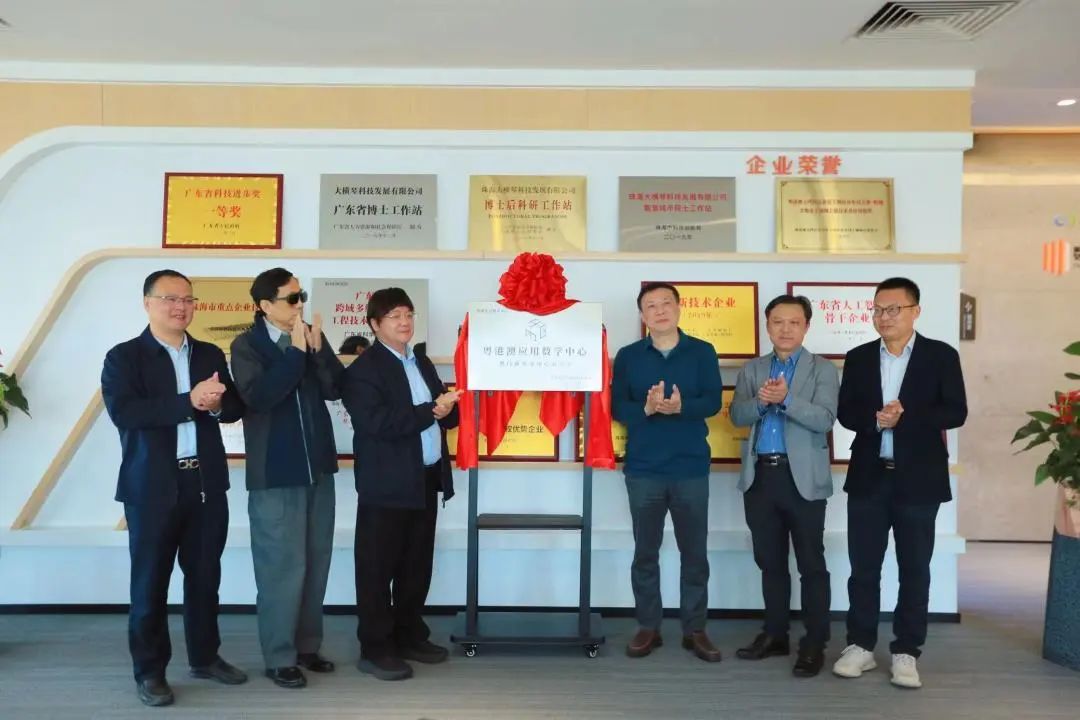 粵港澳國家應(yīng)用數(shù)學(xué)中心王一舉教授、粵港澳國家應(yīng)用數(shù)學(xué)中心黃泰華博士、廣東省工業(yè)與應(yīng)用數(shù)學(xué)學(xué)會理事長王其如教授、中山大學(xué)數(shù)學(xué)學(xué)院(珠海)院長趙育林教授、合作區(qū)經(jīng)發(fā)局邵飛杰、南航翔翼公司曹立新、泰迪智能科技公司張良均、大橫琴科技公司楊凱等領(lǐng)導(dǎo)、嘉賓參加揭牌儀式。