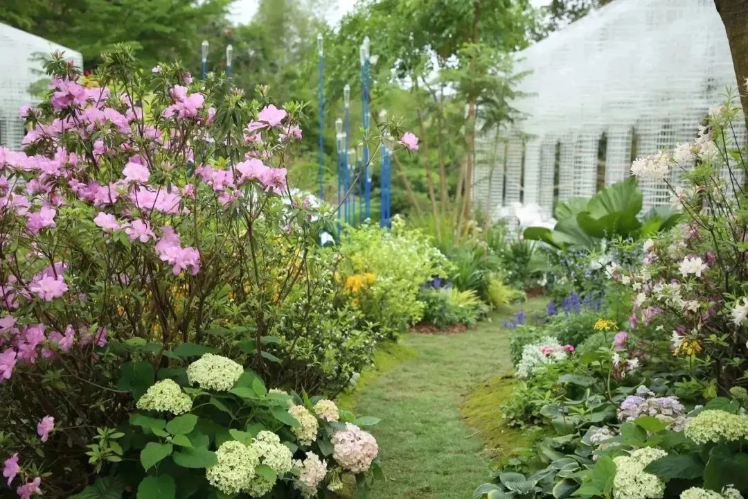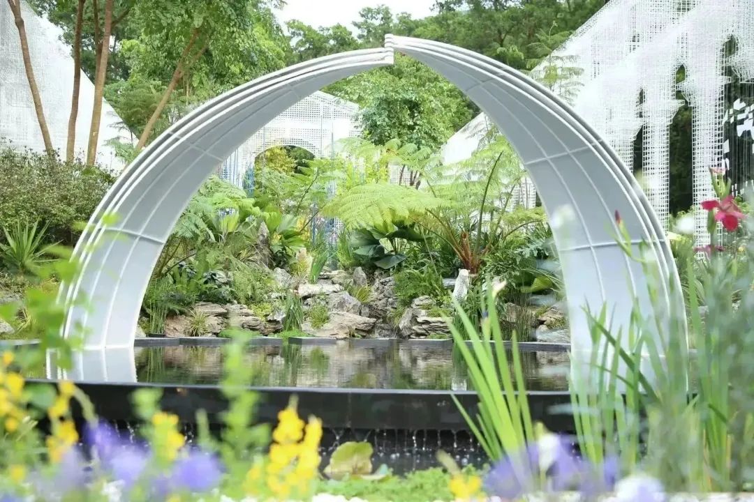 以“筑夢伊甸園”為名,以經(jīng)典葡式莊園庭院為原型,以花為材,橫琴展園將多種粵澳特色元素與綠色環(huán)保理念相結(jié)合,串聯(lián)起“落花”、“乘風(fēng)”、“盈滿”三大主題空間,園內(nèi)共展示了幌傘楓、桫欏、鳳尾蕨等橫琴本土植物和杜鵑、月季、百子蓮等新品種植物共計(jì)130余種。