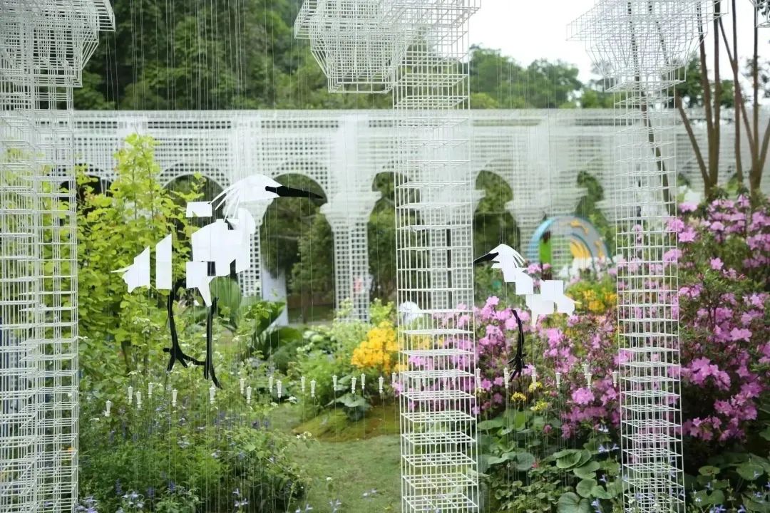 本著資源化、綠色低碳的原則,橫琴展園采用環(huán)保搭建材料,園內(nèi)的特色門廊、景觀座椅、休閑樹池、月洞門等景觀構(gòu)筑物由多種可拆解的金屬絲單體構(gòu)筑而成,不僅帶來了獨(dú)特的藝術(shù)美感和互動(dòng)體驗(yàn),還能回收再利用,減少材料消耗。