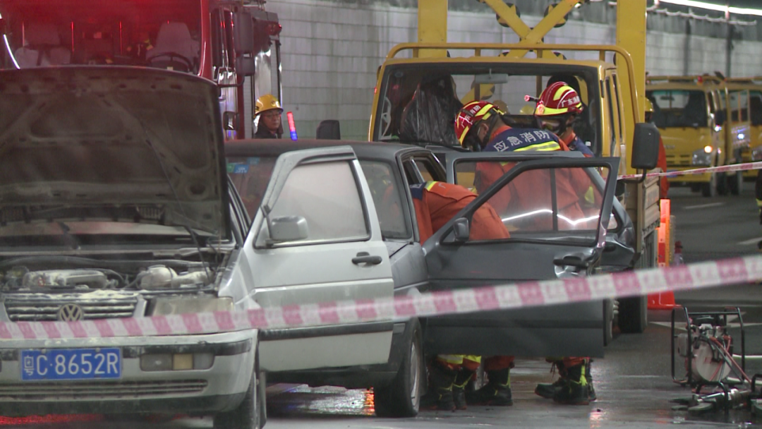 夏日酷暑高溫,隧道通車情況復(fù)雜,如果發(fā)生車輛碰撞起火事故怎么辦?車上人員如何救援?滯留車輛如何疏散?橫琴隧道突發(fā)交通事故應(yīng)急處置演練,以“實戰(zhàn)”遞交答卷。