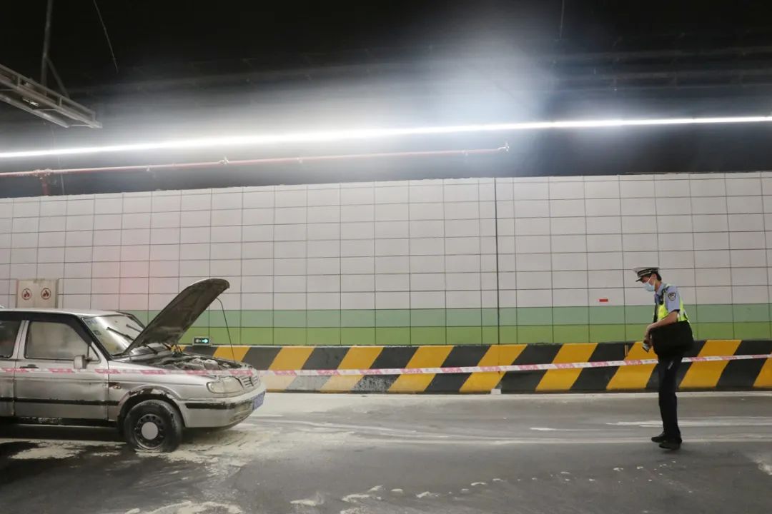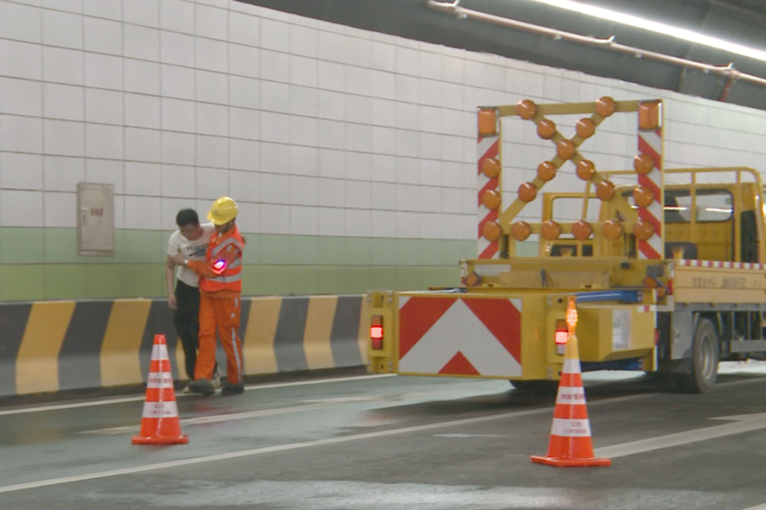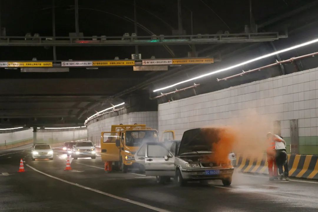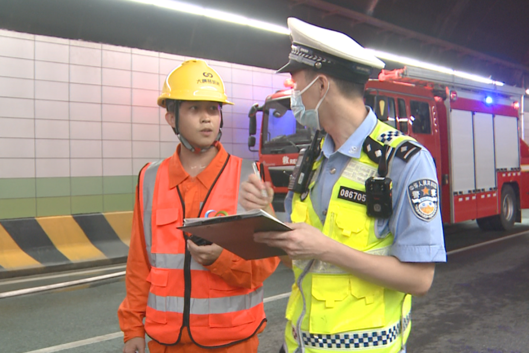 在發(fā)現(xiàn)車輛碰撞事故后,迅速在隧道口進行圍蔽和疏導(dǎo);