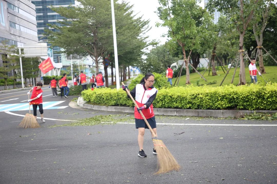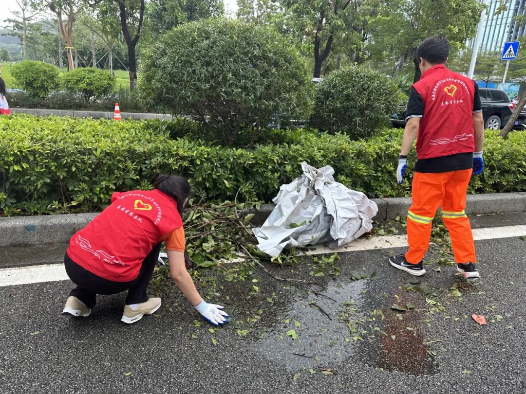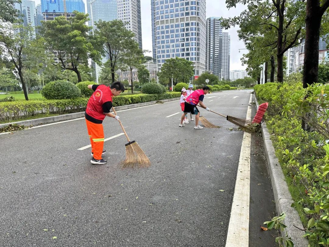 此次活動(dòng)招募志愿者共60余人,志愿者們在合作區(qū)金融島的匯通三路、匯通五路、十字門大道和榮珠道等地進(jìn)行扶樹木、掃馬路、清垃圾等保障工作,全力筑牢災(zāi)后恢復(fù)工作的“紅色堡壘”。