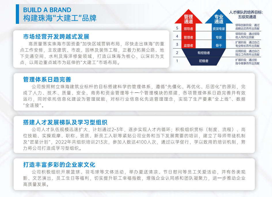 對(duì)于珠海建工集團(tuán)來講,珠海建筑業(yè)的標(biāo)桿是最靚麗的名片,也是最具魅力、最富競(jìng)爭(zhēng)力的獨(dú)特優(yōu)勢(shì)和戰(zhàn)略資源:
