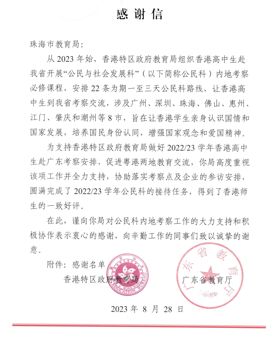 助力粵港教育交流,支持兩地智趣研學。香港特區(qū)政府教育局組織香港高中生赴我省開展“公民與社會發(fā)展科”內(nèi)地考察必修課程,大橫琴管廊積極配合相關(guān)工作的開展,為香港高中生細致介紹橫琴綜合管廊這一保障城市運行的“地下生命線”,獲“香港特區(qū)政府教育局、廣東省教育廳”致信感謝,被認定為“工作特別突出單位”。
