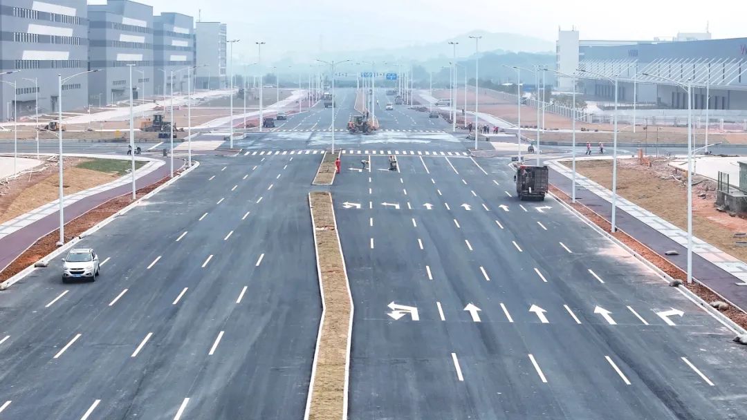 2024年1月30日,雷蛛大道中段、欣港路東西、馬山北路東西、中心西路及濱港路北段等約6公里道路按預(yù)定計(jì)劃建成通車,富山工業(yè)園二圍北片區(qū)初步形成“一大環(huán)、兩小環(huán)”交通路網(wǎng),基本滿足片區(qū)內(nèi)各廠區(qū)出行需求。