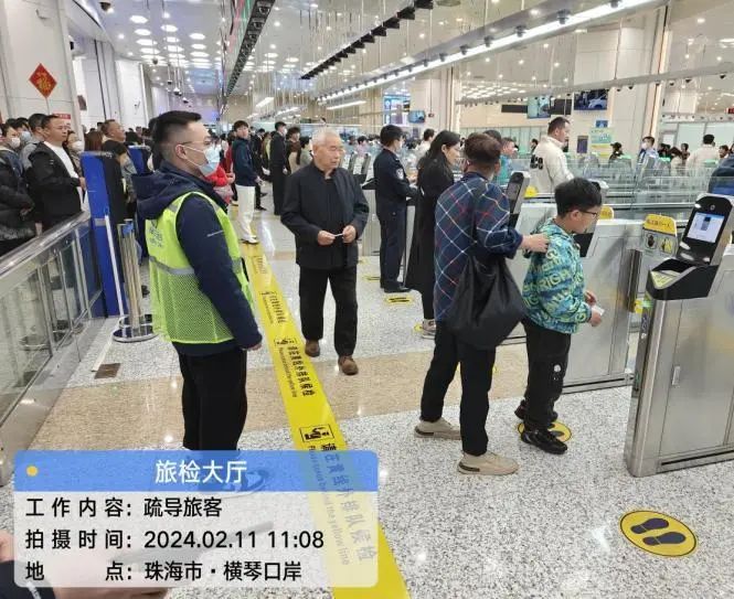 相較往年,今年春節(jié)橫琴口岸呈現(xiàn)出客流高峰提前、持續(xù)時(shí)間長、出入高峰疊加等特點(diǎn),2月11日至16日(大年初二至初七)連續(xù)6天出入單向客流均超過3萬人次。其中,2月12日(大年初三)橫琴口岸單日客流超8.2萬人次,創(chuàng)橫琴口岸成立以來歷史新高。為應(yīng)對(duì)春節(jié)期間口岸高位客流,珠海大橫琴口岸實(shí)業(yè)有限公司(下稱大橫琴口岸公司)節(jié)前召開專題會(huì)議,提前部署應(yīng)急人員、物資、設(shè)備等通關(guān)安全保障;春節(jié)期間,根據(jù)客流量變化,大橫琴口岸公司通過科學(xué)增加人力、設(shè)置蛇形緩沖通道、屏幕投放指引等措施,多管齊下加強(qiáng)出入境旅客分流引導(dǎo),防止因高客流量發(fā)生擁擠、踩踏等治安事件的發(fā)生。另外在現(xiàn)場(chǎng)設(shè)置“特別通道”,為老人、孕婦和殘疾人等行動(dòng)不便的旅客提供便利,并設(shè)置了醫(yī)療救援,以備過關(guān)旅客有不時(shí)之需。