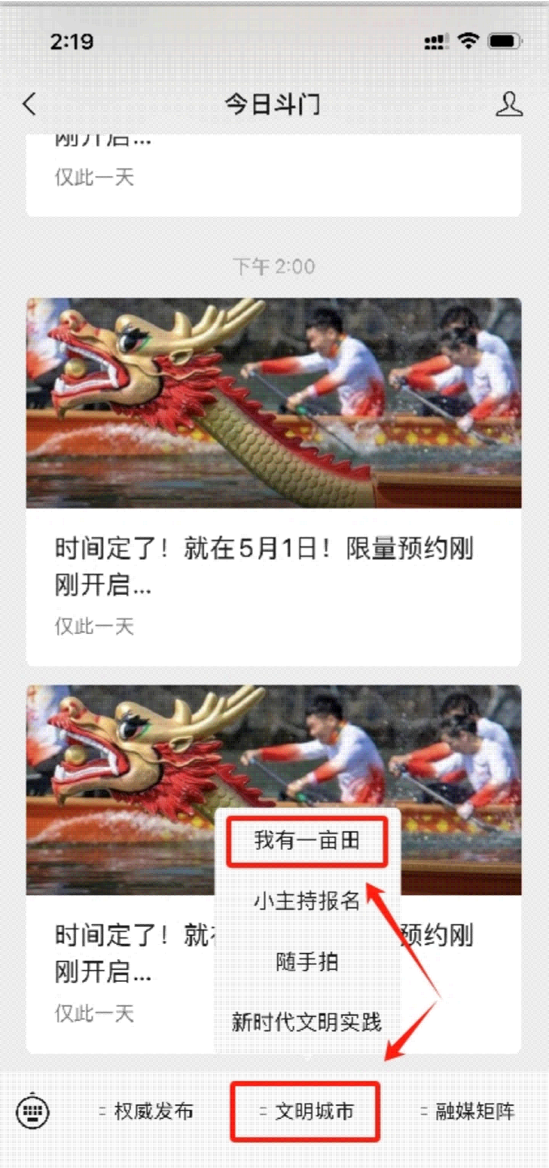 1.進入“今日斗門”公眾號,點擊"文明城市",選擇"我有一畝田"進入預(yù)約小程序,點擊“預(yù)約”后,按照您的理想時間,選擇相應(yīng)時間段。
