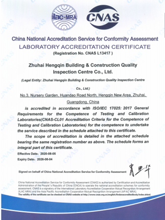 2024年5月25日至26日,由中國合格評(píng)定國家認(rèn)可委員會(huì)(CNAS)委派的評(píng)審專家組一行四人,對(duì)珠海大橫琴集團(tuán)有限公司(以下簡稱大橫琴集團(tuán))下屬企業(yè)珠海市橫琴新區(qū)建設(shè)工程質(zhì)量檢測(cè)中心有限公司(以下簡稱橫琴檢測(cè)中心)開展CNAS實(shí)驗(yàn)室認(rèn)可復(fù)評(píng)審。
