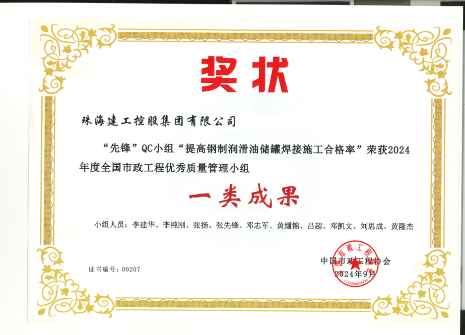 在本次QC小組活動中,珠海建工集團開展了一系列業(yè)務(wù)培訓(xùn),組織技術(shù)條線輸出了QC成果共33個課題,其中《提高鋼制潤滑油儲罐焊接施工合格率》獲得國家級一類成果;其余成果中15個課題榮獲省級優(yōu)秀QC成果:2個課題榮獲省級一類成果;6個課題榮獲省級二類成果;7個課題榮獲省級三類成果;技術(shù)研發(fā)中心臨時負(fù)責(zé)人李建華榮獲優(yōu)秀發(fā)布者,本次QC小組活動的優(yōu)異成績,實現(xiàn)了公司QC成果獎在國家級獎項、省級獎項方面零的突破,為公司工程項目評優(yōu)奠定了基礎(chǔ)。