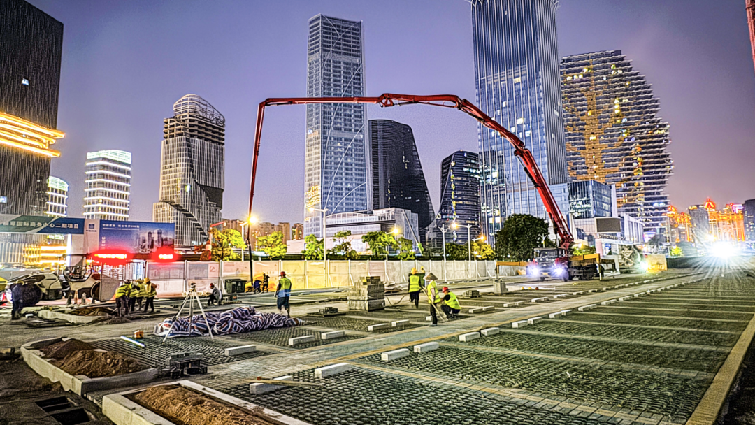 紅旗村2號(hào)停車場(chǎng)位于橫琴鬧市區(qū),旅客較多、人流量大。加上項(xiàng)目地處老舊城區(qū),地下管線錯(cuò)綜復(fù)雜且施工空間受限,增加了改造的難度。為了減少對(duì)周邊居民和商業(yè)的影響,大橫琴股份科學(xué)組織施工,合理分配任務(wù)及物資運(yùn)輸,通過人工探挖管線、錯(cuò)峰施工、交叉作業(yè)等措施,加快推進(jìn)項(xiàng)目建設(shè)。