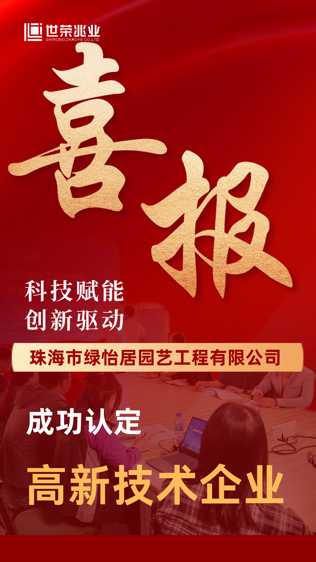 近日,大橫琴集團(tuán)上市平臺廣東世榮兆業(yè)股份有限公司旗下珠海市綠怡居園藝工程有限公司成功通過高新技術(shù)企業(yè)認(rèn)定。這一認(rèn)證既是世榮兆業(yè)在大橫琴集團(tuán)賦能下深化科技轉(zhuǎn)型的階段性成果,更是對綠怡居多年堅持技術(shù)研發(fā)的權(quán)威認(rèn)可。