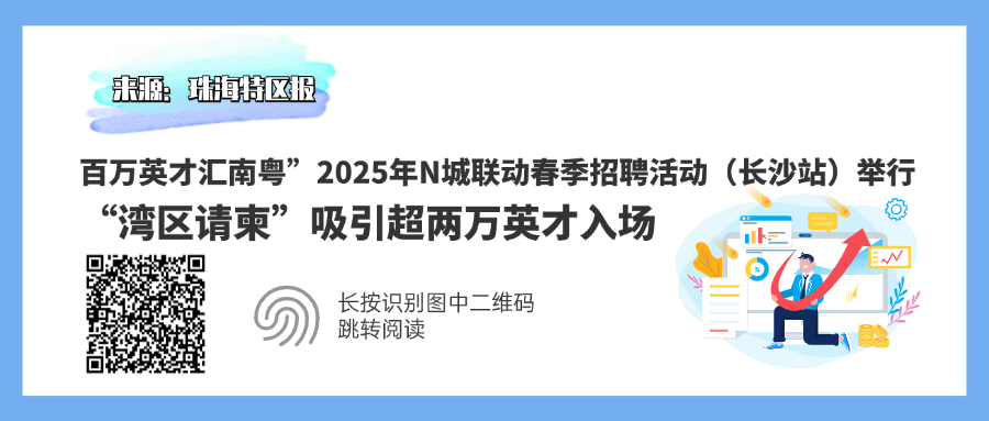4月26日,由教育部和廣東省委、省政府主辦,珠海市和橫琴粵澳深度合作區(qū)聯(lián)合承辦的“百萬英才匯南粵”2025年N城聯(lián)動春季招聘活動(長沙站)在長沙北辰國際會議中心舉行。本次活動以“粵聚英才 粵見未來”為主題,由珠光集團具體執(zhí)行,超250家廣東知名用人單位參展,吸引超2萬名求職者參與,現(xiàn)場收取紙質(zhì)簡歷3.1萬份、線上投遞簡歷1.1萬份,超5000人達成就業(yè)意向。